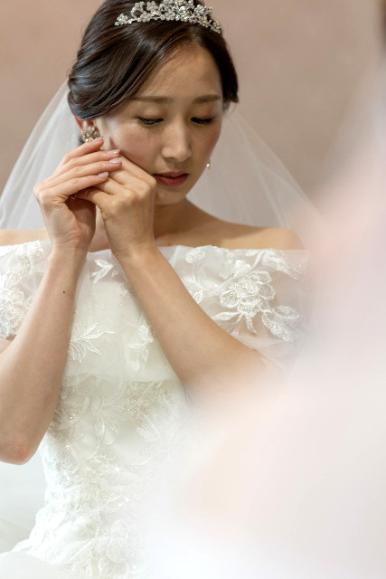 新婦様は綿帽子を被り、神前式の身支度を整えます。
