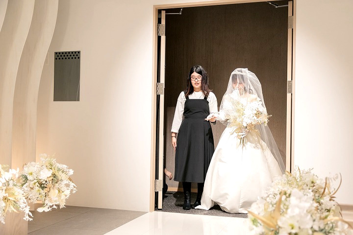 せっかくなら、、という事で、ご新婦様のエスコ―ト役として入場のお手伝いを頂きました。