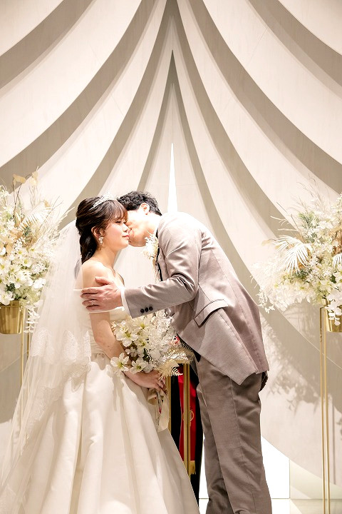 ベールアップ~誓いのウェディングキスです。