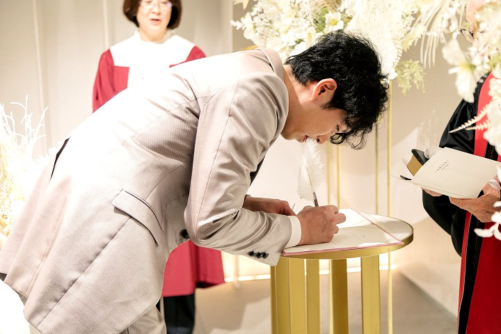 お二人の誓いの証として、署名を行って頂きます。