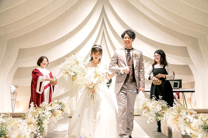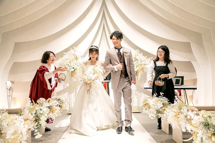 皆様からのフラワーシャワーの中、お二人ご退場です!!