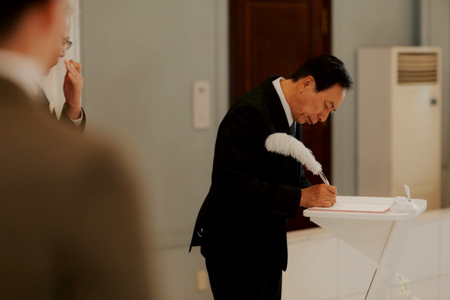続いて代表してご両家のお父様より立会人のご署名をいただきます