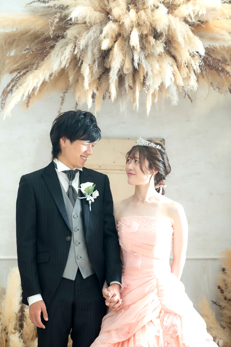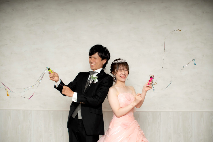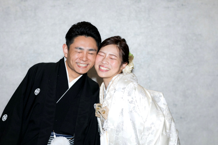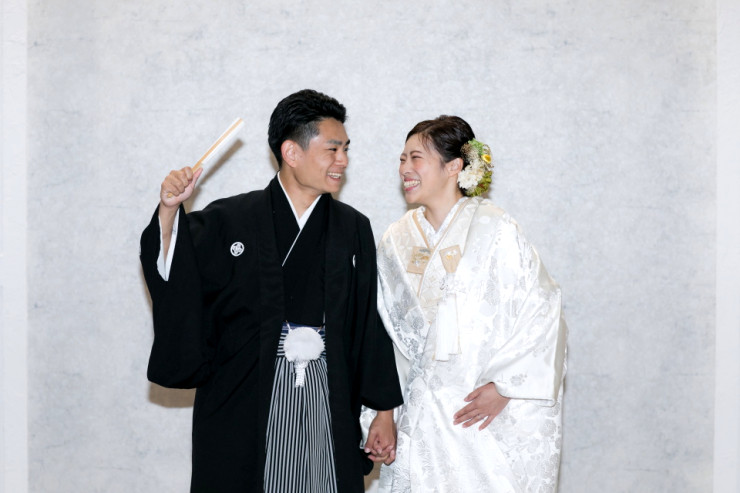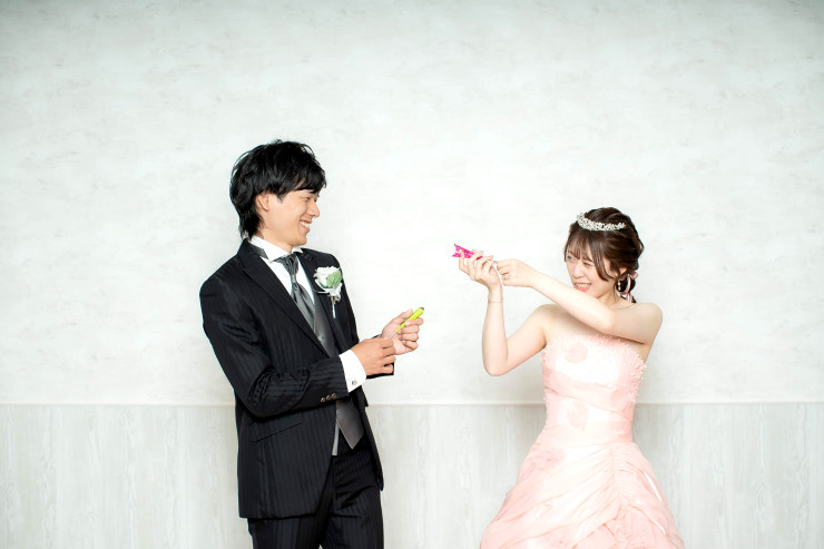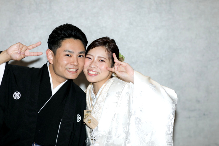 結びはシンプルな背景でお二人らしさあるれるポーズを♪