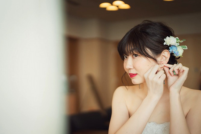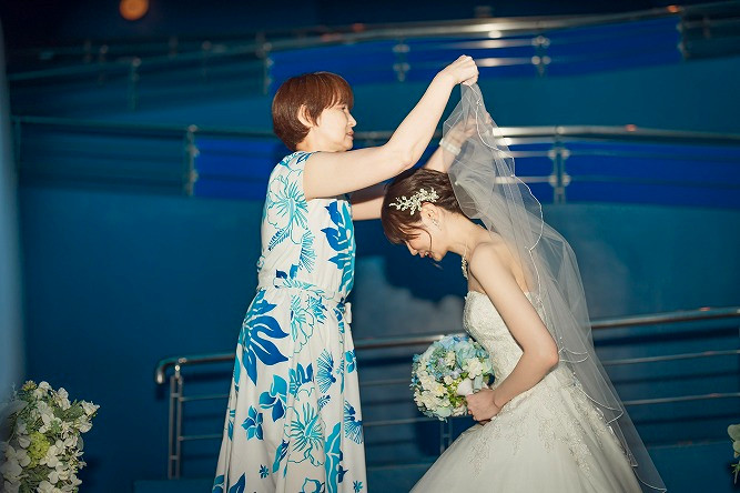 お母様エスコート頂き、花嫁の最後の身支度ベールダウンセレモニーもお願いしました。