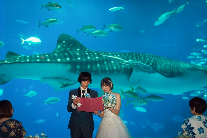 本日は美ら海水族館でのご結婚式の様子をご紹介いたします♪