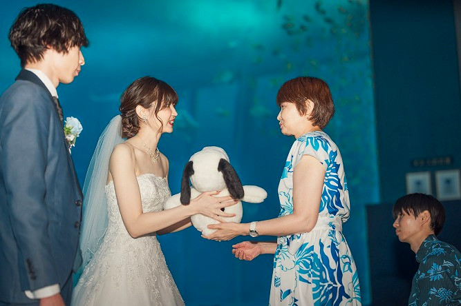 親御様へ感謝の気持ちをお伝えしたいとお二人はウェイトドールをご用意されました。