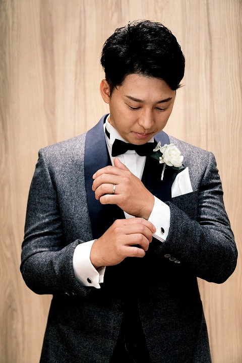 親御様に初めてタキシード&ドレス姿をお見せするシーンです