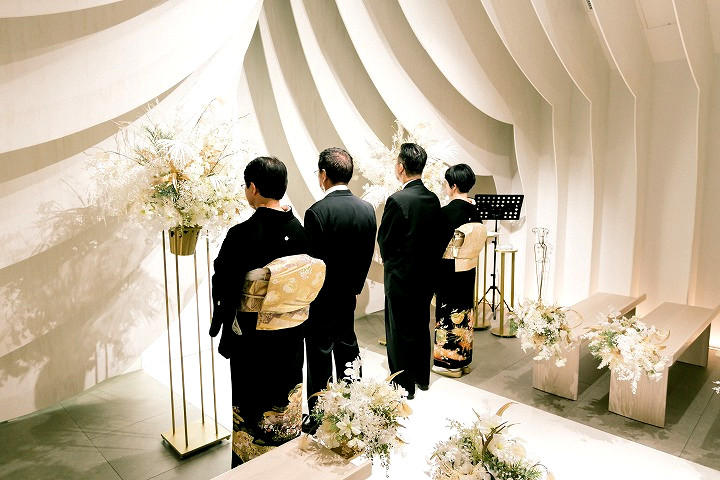 親御様をチャペルにご案内し、後ろを向いてお待ち頂きます