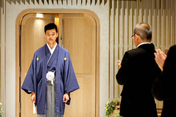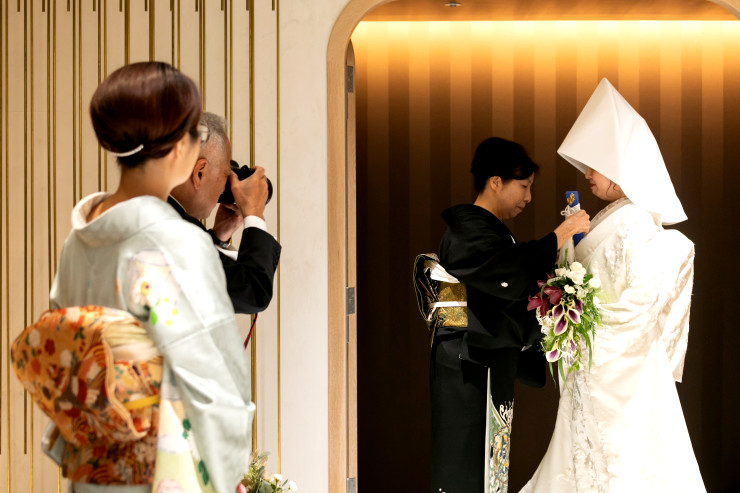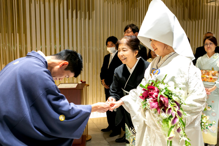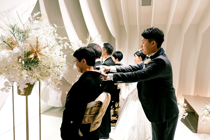 お二人は、親御様とお二人だけの大切な時間として入場前におこないました。
