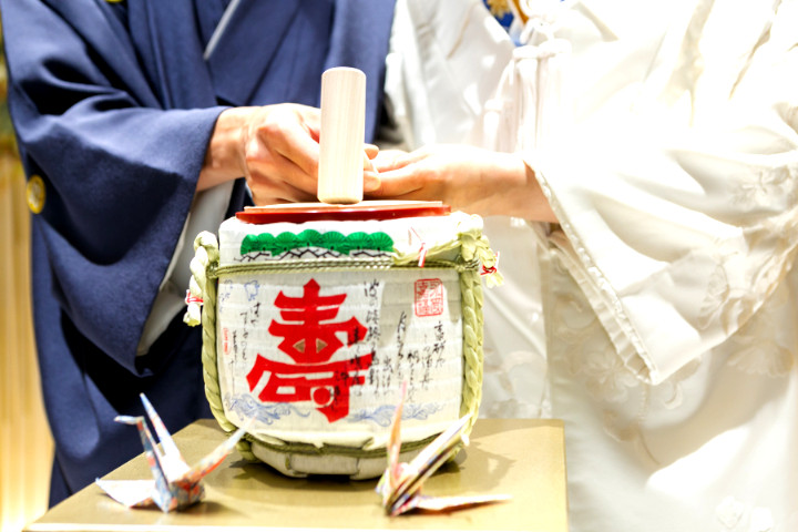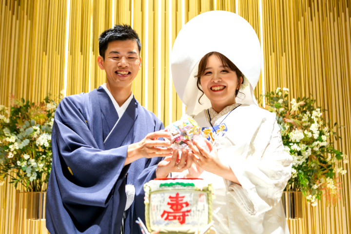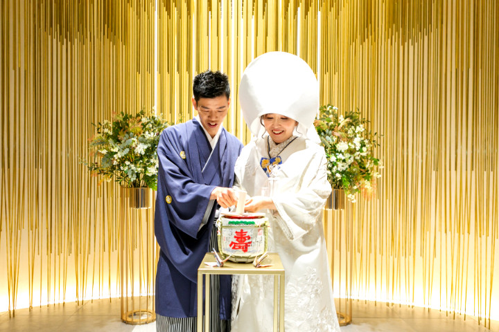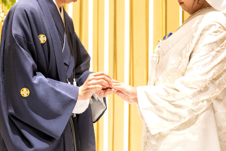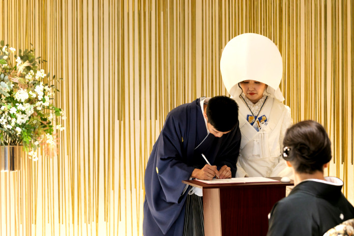 (懐剣の儀:これからの家庭を守っていく決意を持ってほしい、そんな思いを込めて花嫁の胸元に懐剣を差す儀式)
