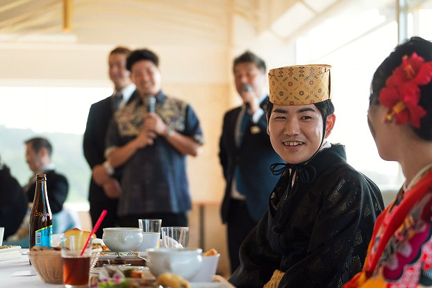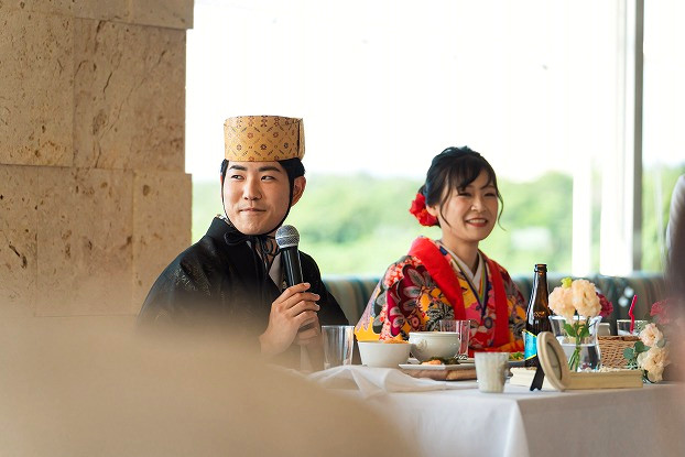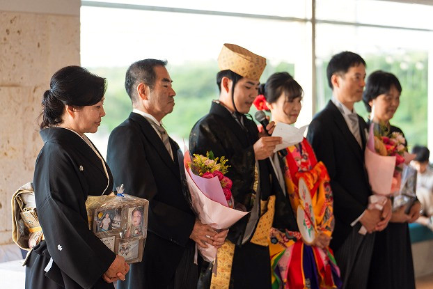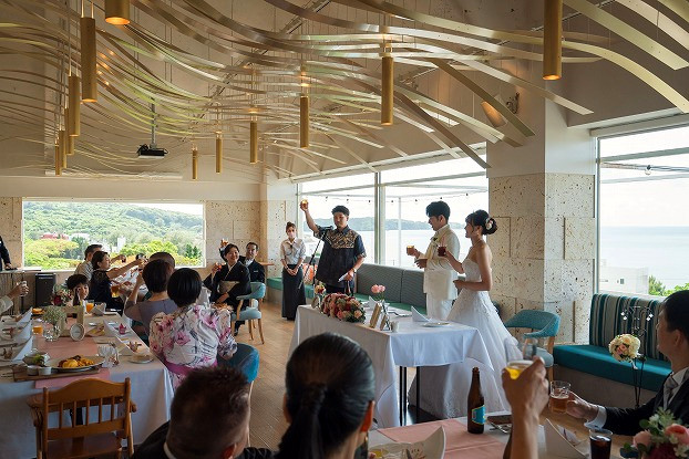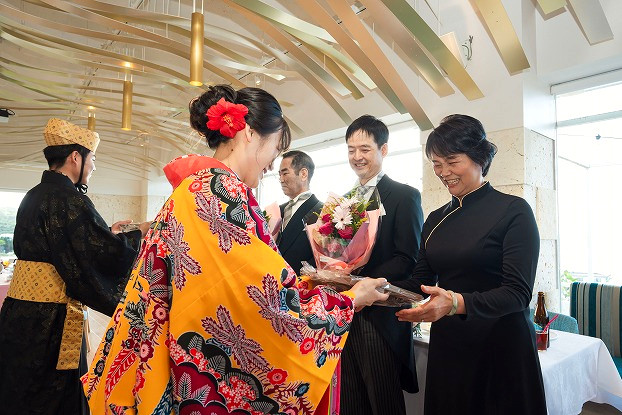 乾杯のご挨拶を頂いたあとは、新郎お母様より【かぎやで風】をご披露いただきました。