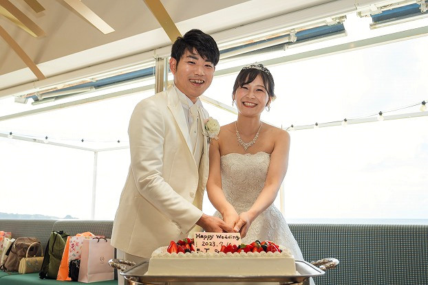 続いての演出は結婚式の中でも人気演出のウェディングケーキ入刀です♪
