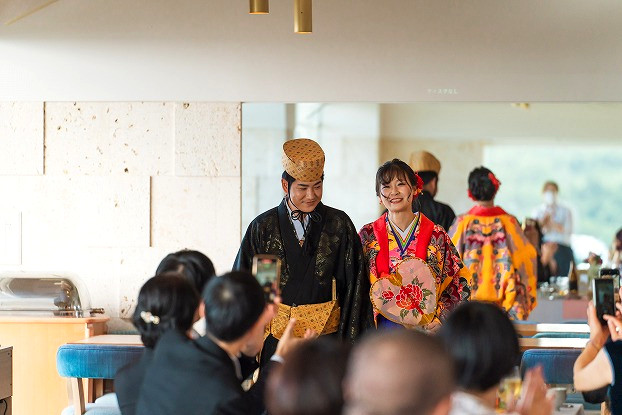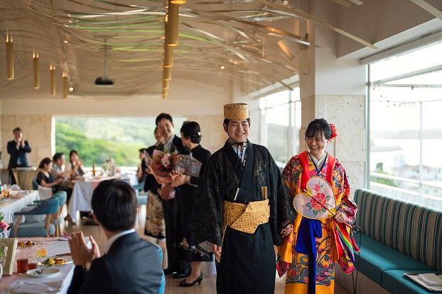 沖縄本島地方にて結婚式などお祝いの席の幕開けに披露される舞踊です。