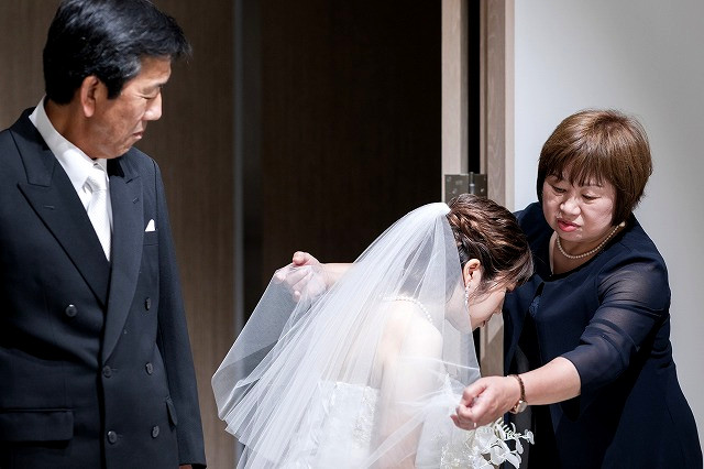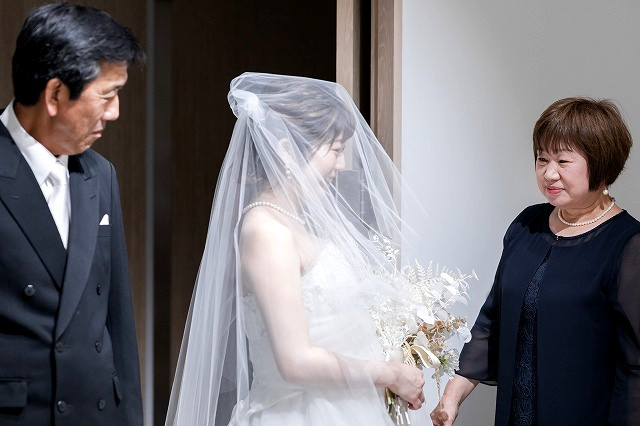 お母様の表情を見て、少しリラックスした表情がベールの中から見えます👰