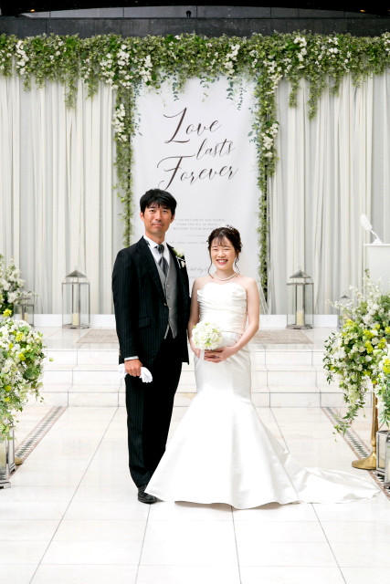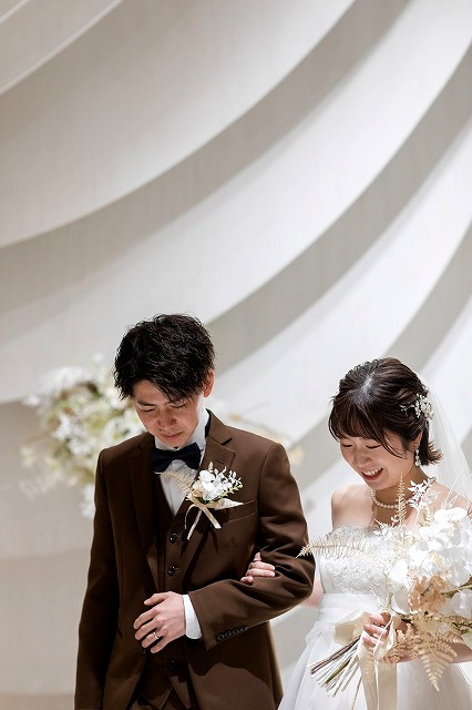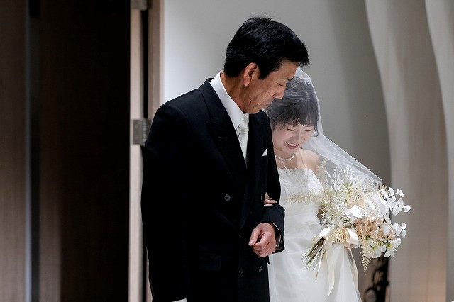お父様と腕を組んでウェディングステップで新郎様のもとへ
