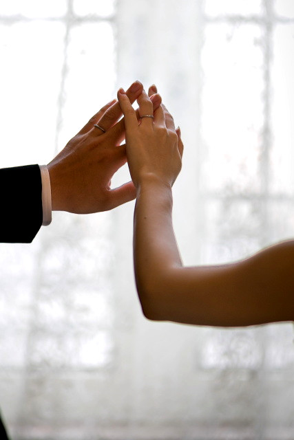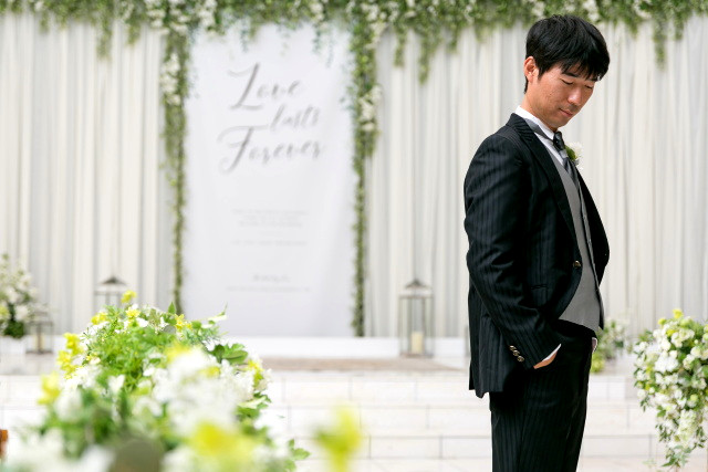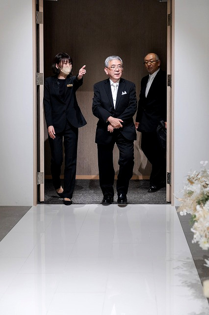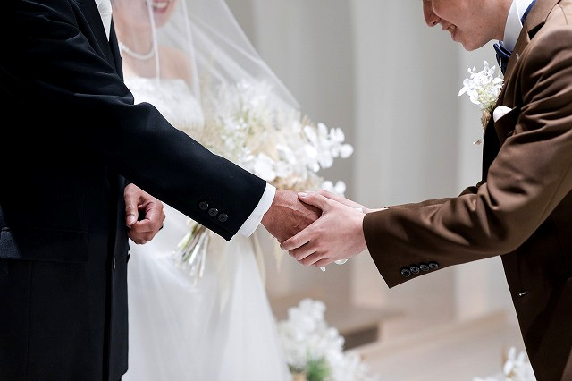新郎様とお父様は約束の握手を交わして頂き、エスコートのバトンタッチです