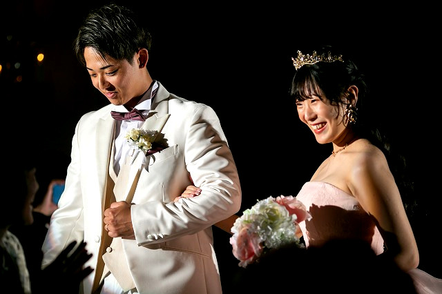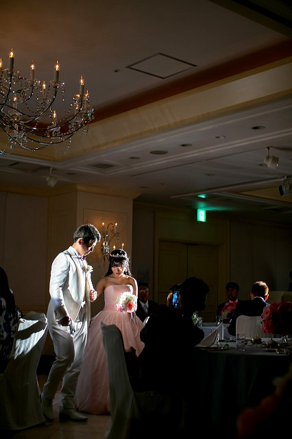 新郎新婦様は皆様にご挨拶しながらお席へ・・・