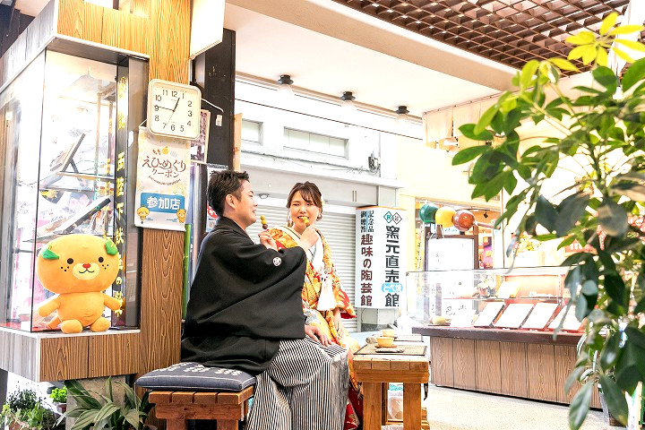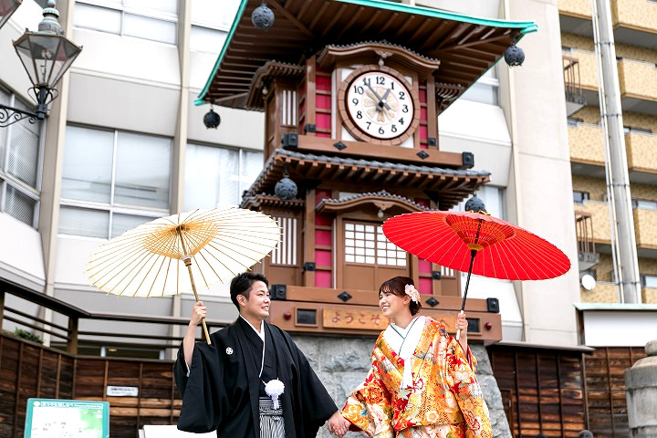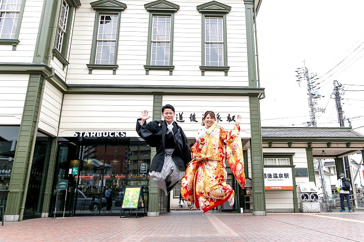 道後の街並みを沢山お楽しみいただき、前撮り撮影は無事に結びとなりました。