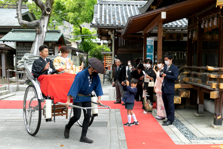 挙式の後は人力車に持って、境内から京都御所周辺の周遊が楽しめます。