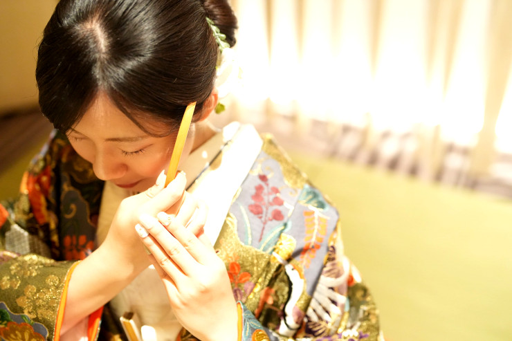 和装のソロフォト、京都店のスタジオの雰囲気とマッチし、かっこよくキマリました!