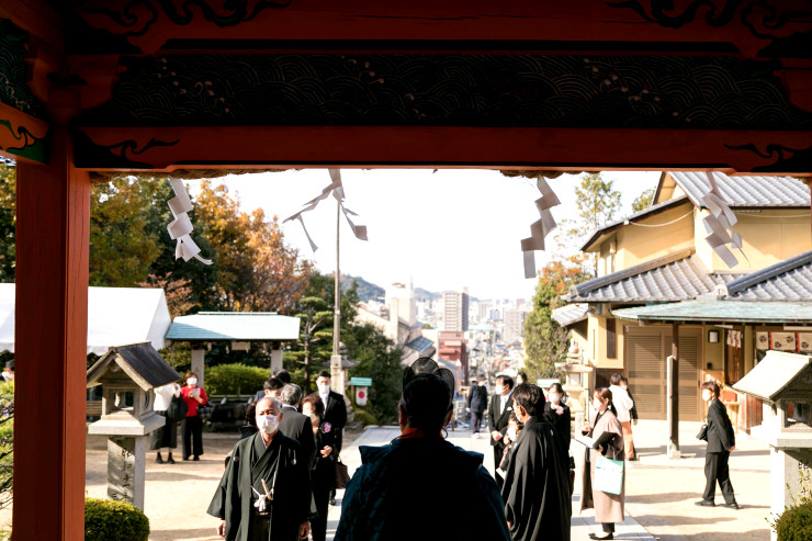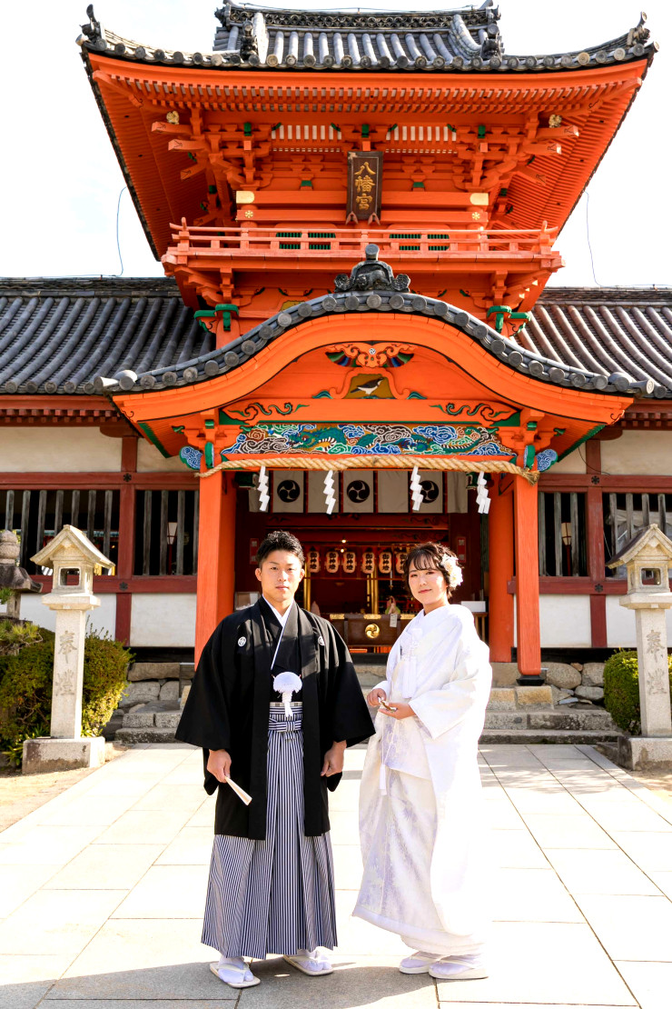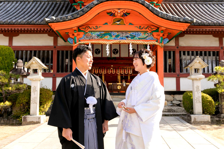 ご新郎ご新婦様が伊佐爾波神社にご到着されましたらお写真のご撮影からスタートです。