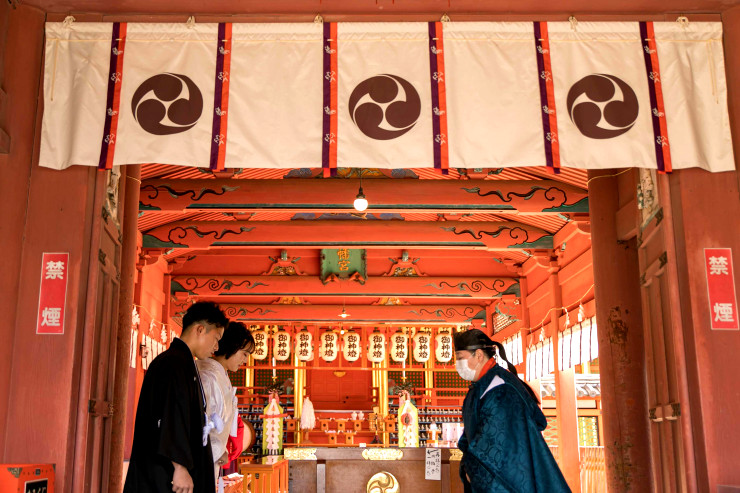 リハーサルが終了し、これよりはご列席の皆様を拝殿内へとご案内いたします。