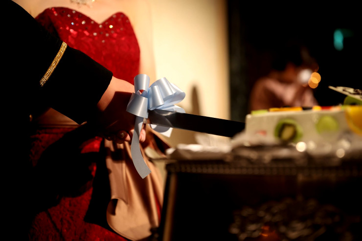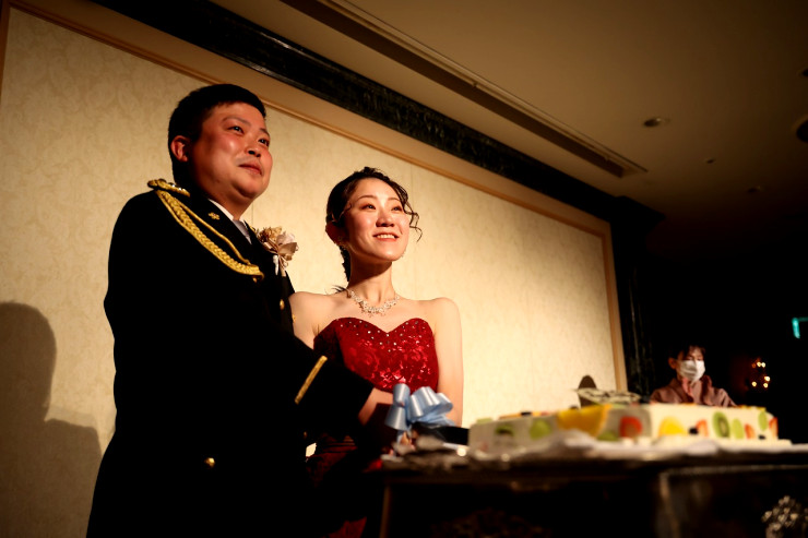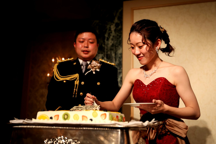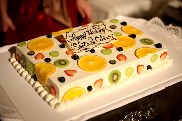お2人こだわりのフルーツの断面ケーキにナイフを入れていただきましょう。