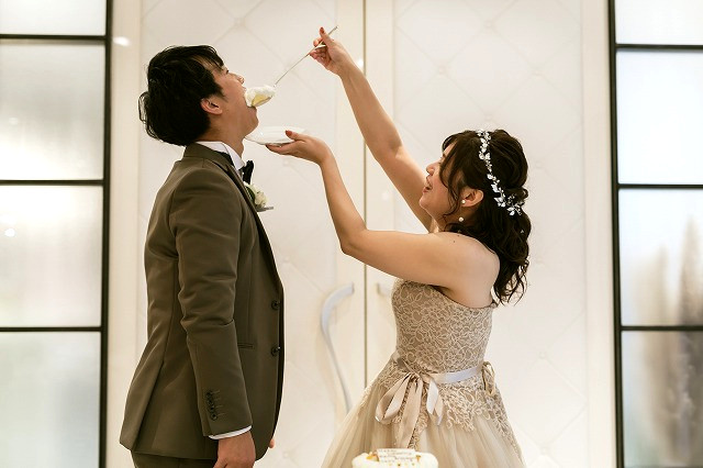 サンクスバイトとは、「ありがとう」の気持ちを伝えたいゲストに、ウェディングケーキなどをスプーンで食べさせてあげるという演出です。