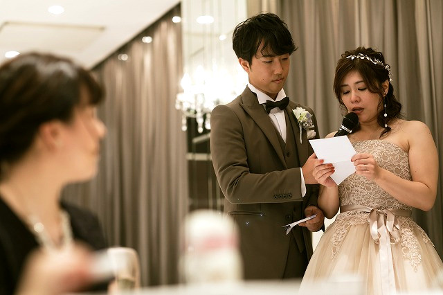 結びに新郎新婦お二人から感謝の気持ち込めて親御様へお手紙をご披露頂きます。