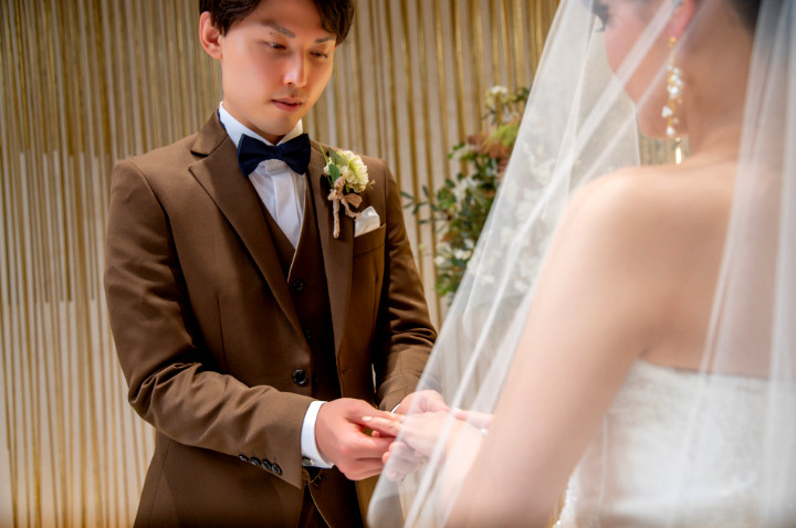 指輪交換やウェディングキス、フラワーシャワーでの退場シーンなど挙式の流れのような撮影も可能です。