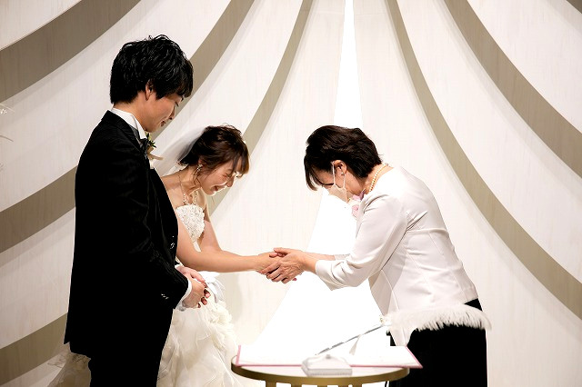 おふたりの手をぎゅっと包み込み、お父様がふたりを結び固めていく。