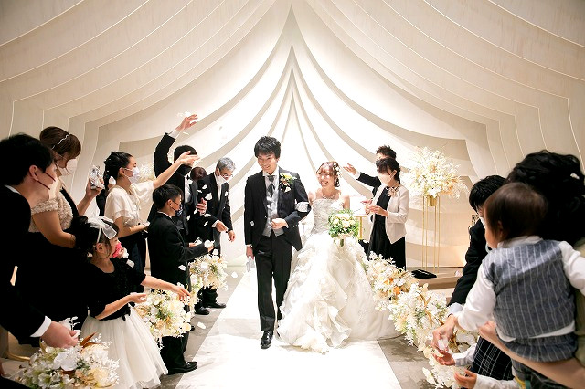 拍手やフラワーシャワーリボンワンズなどで、ゲストに祝福されながら退場!