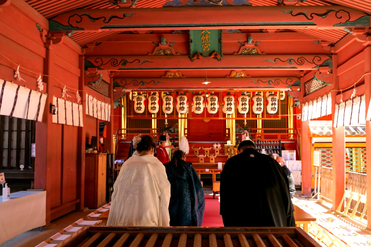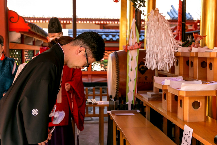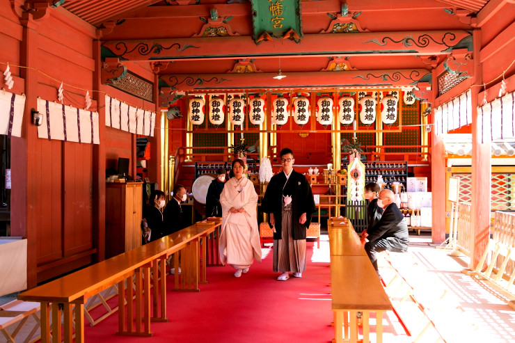 ご列席の皆様を拝殿内へとご案内をして、いよいよご結婚式がはじまります。