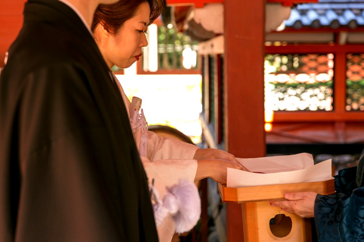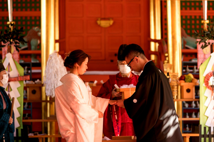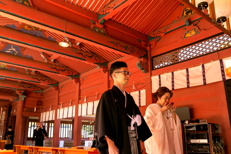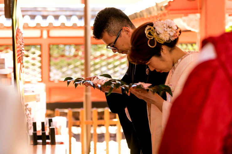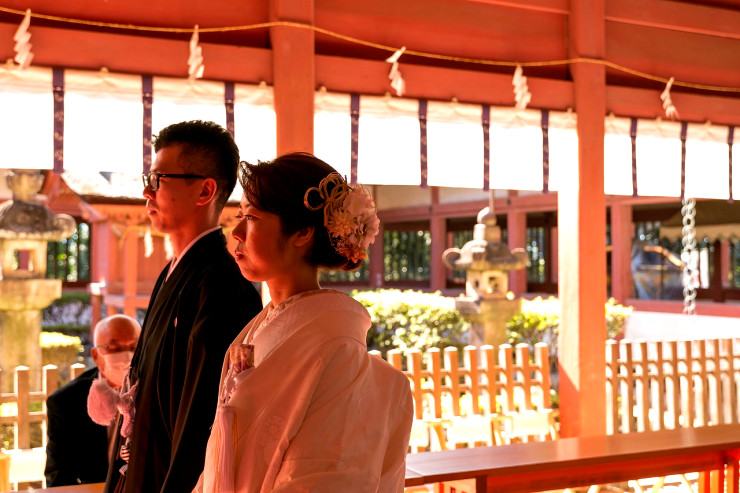 指輪の交換、玉串奉奠と続き、ご結婚式が結びとなりました。