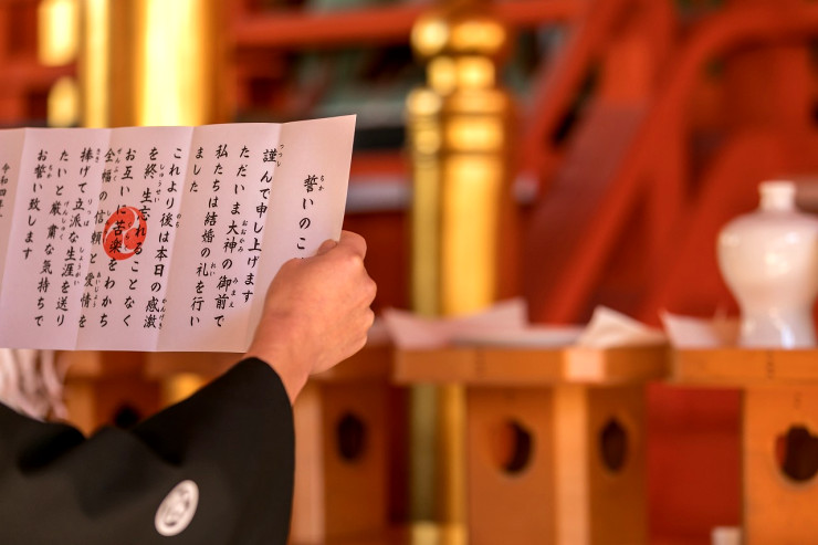 大中小の盃を3度ずつ酌み交わしていただく三々九度をおこなっていただきます。