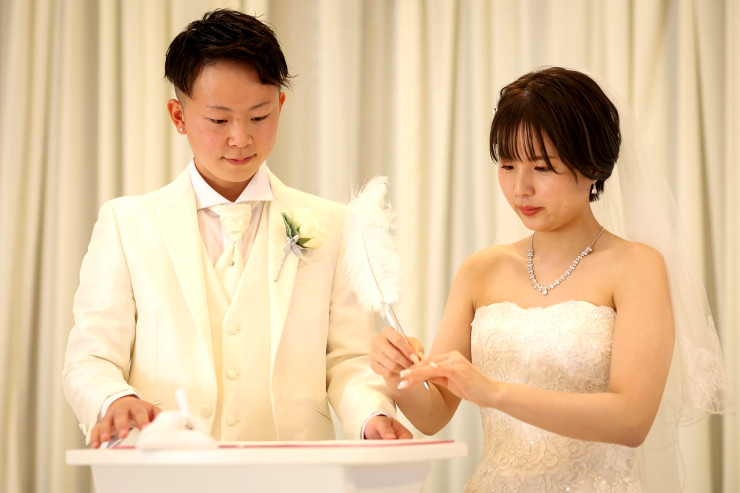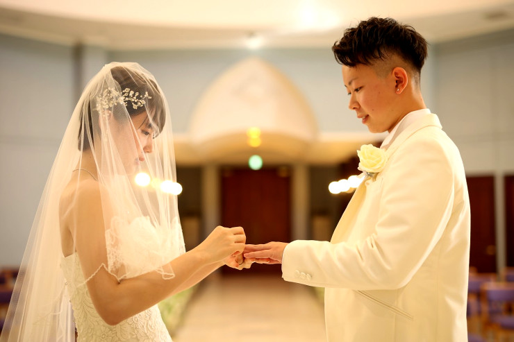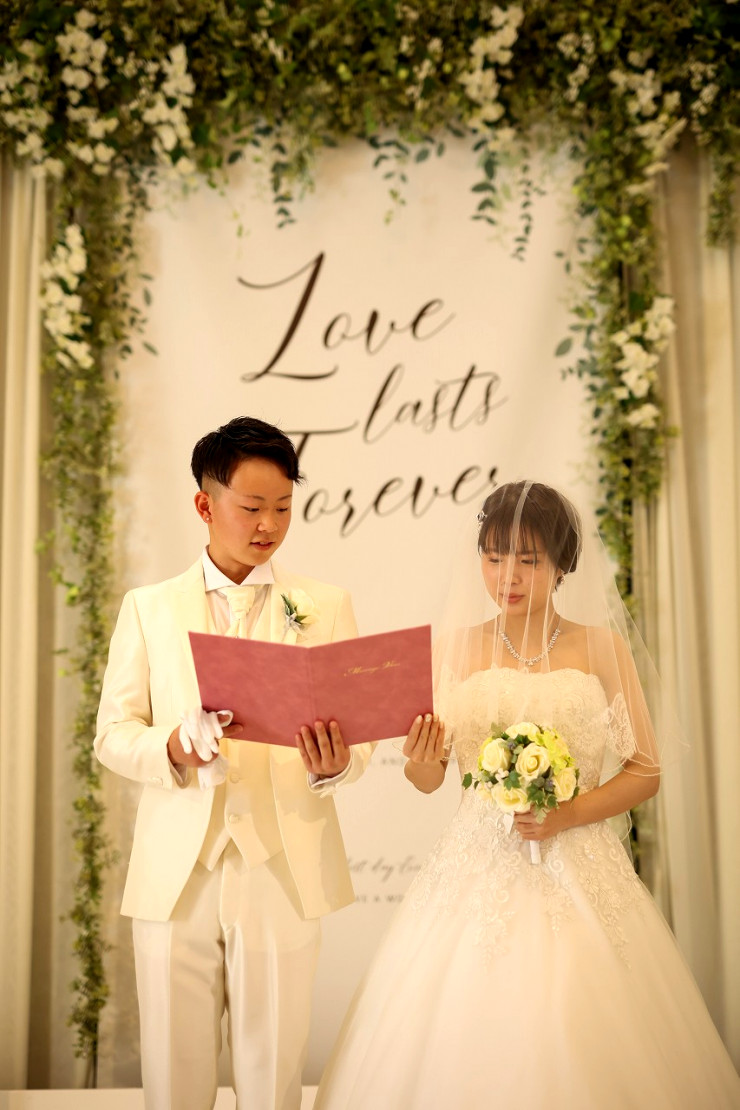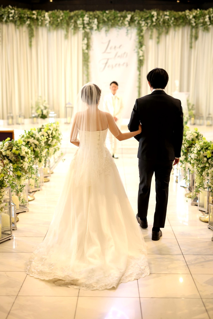 挙式もお手を引き継いで頂いて、おふたりで進んでいきます。