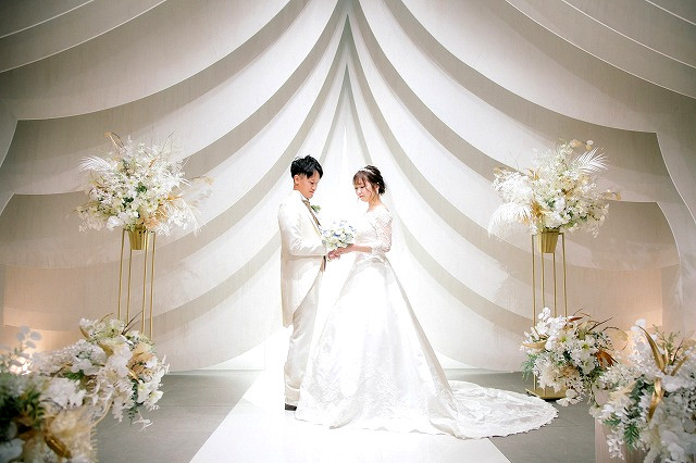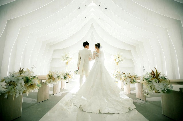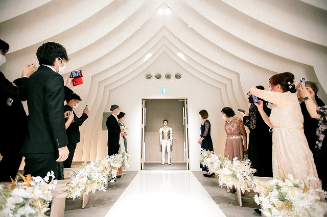 皆様がお揃いになられました。ご結婚式が始まります。