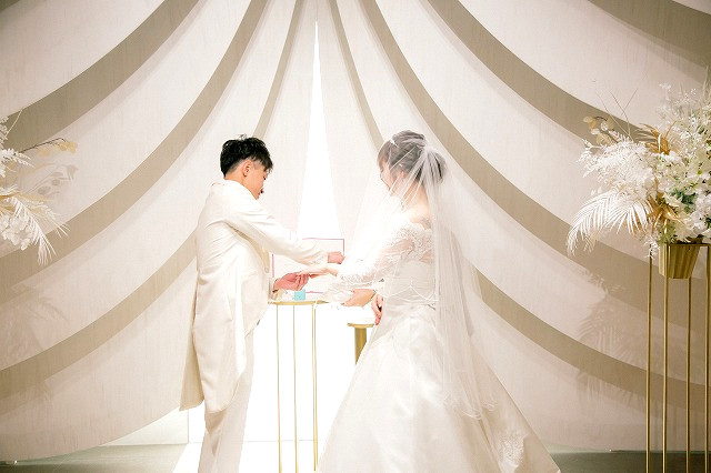 ご入場されましたお2人、これより永遠の愛をお誓い頂きます。