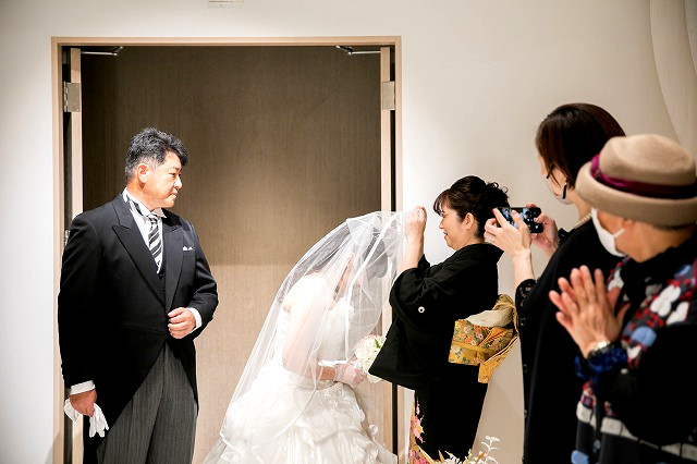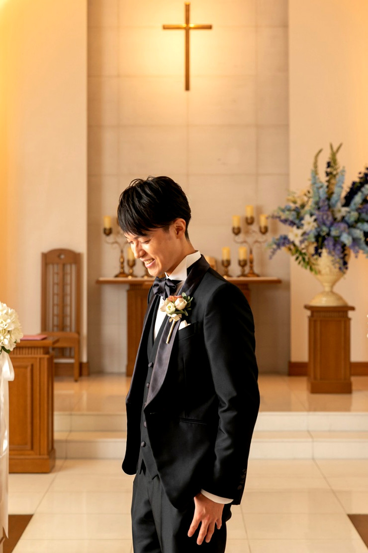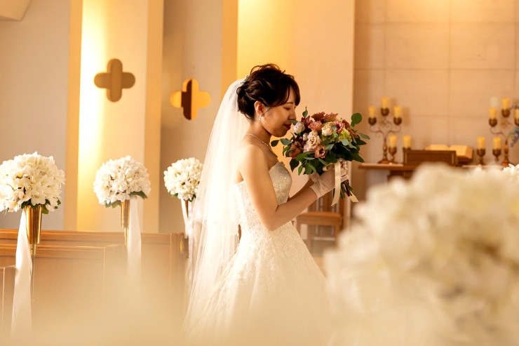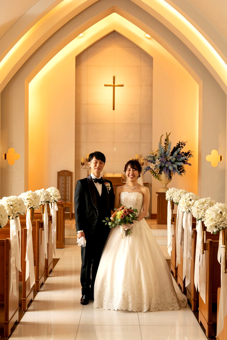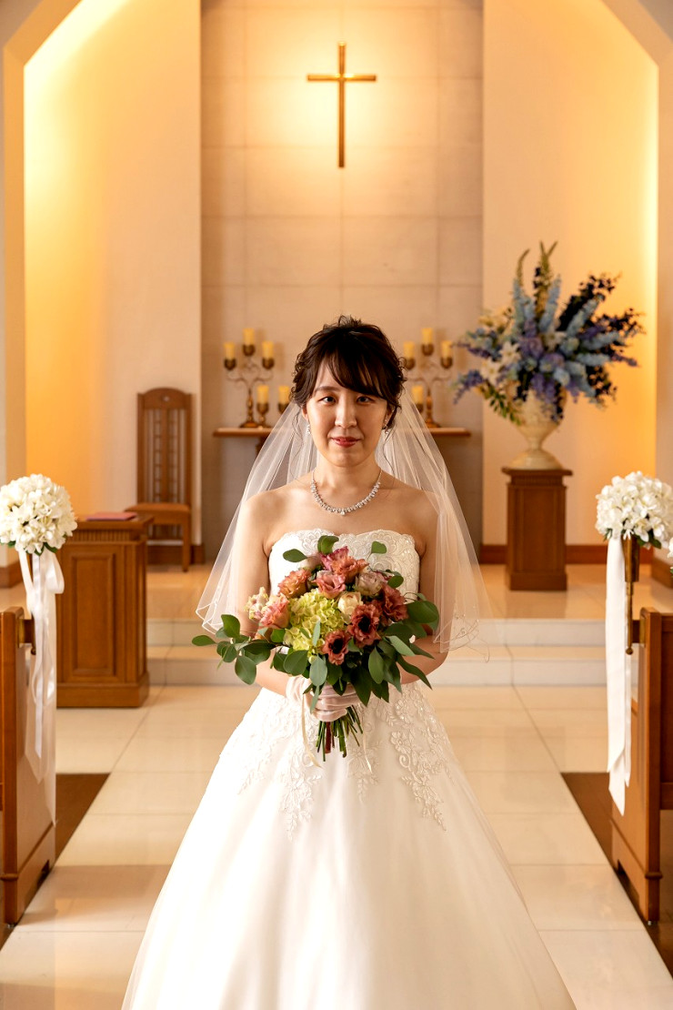 お支度部屋からチャペルにご移動いただき、まずは全身のお姿のご撮影です。