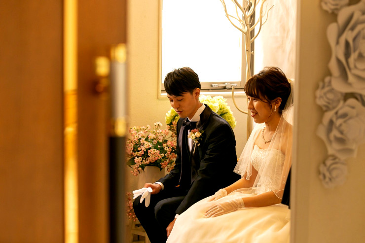 歩き方や結婚式のながれの確認を行ったお2人は大気のお部屋へご案内です。