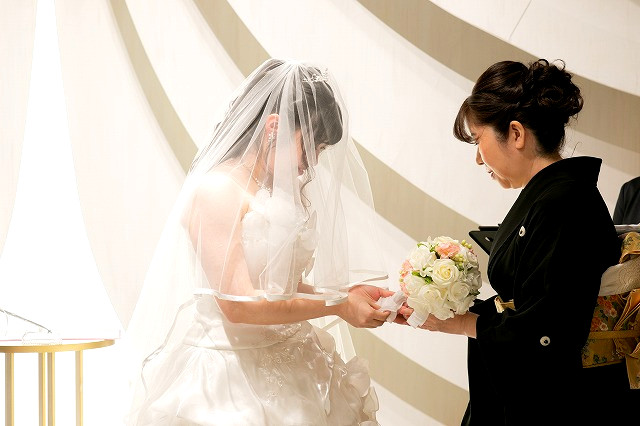 新郎新婦が大中小3つの杯で交互にお神酒をいただくことで、
