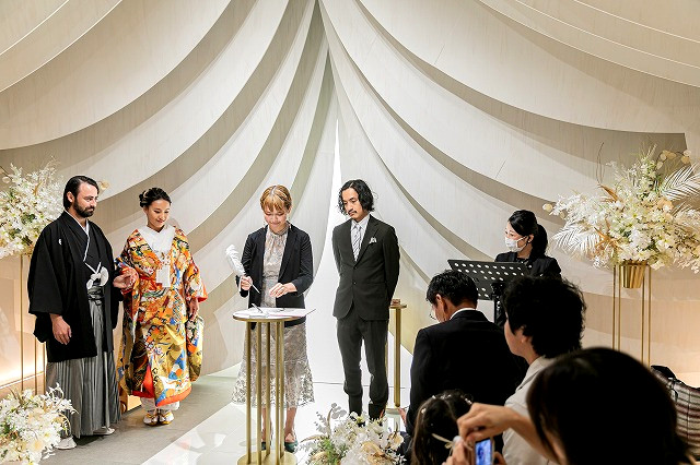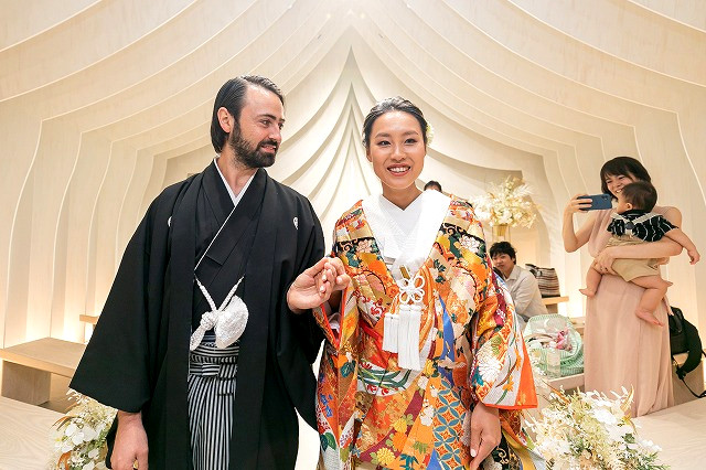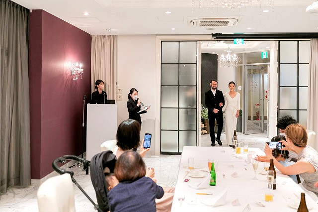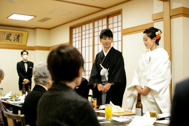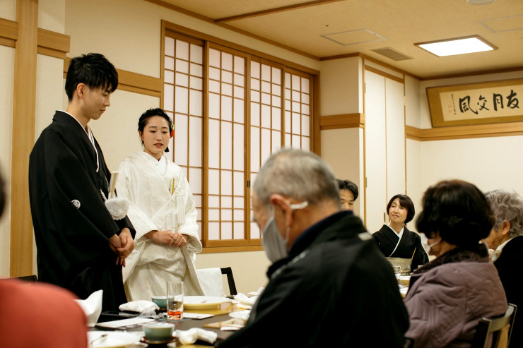 ご結婚式の後、お2人は和装にお着換えをしてご会食会場へとご移動いただきました。