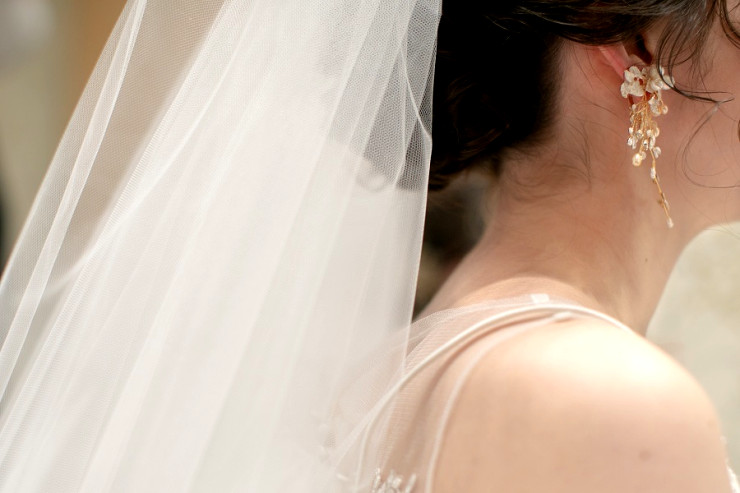 新婦様は、ネイルや髪色、ブーケも青色で揃えられており