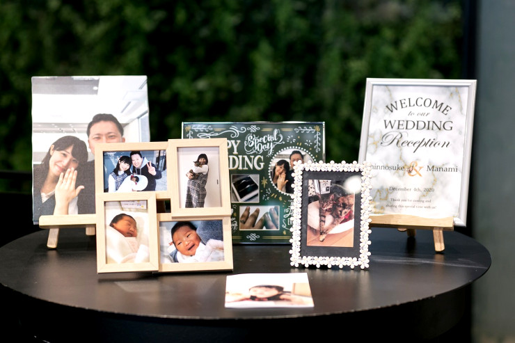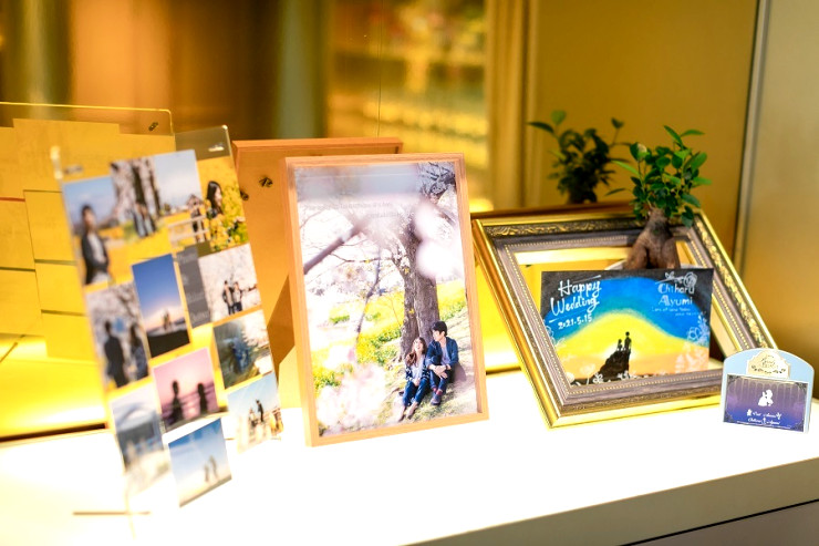 受付スペースではおふたりのお好きな小物などをセッティングして頂けます♪