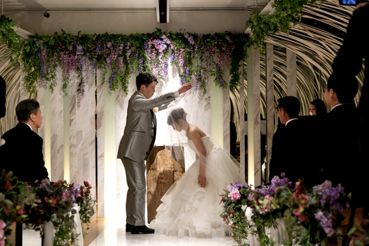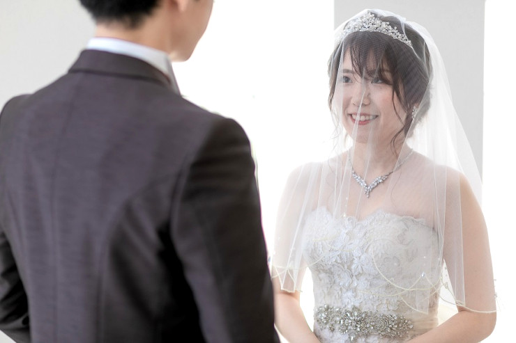 皆様に誓約書をきいていただいたら、指輪の交換→ベールアップ→ウェディングキスとなります