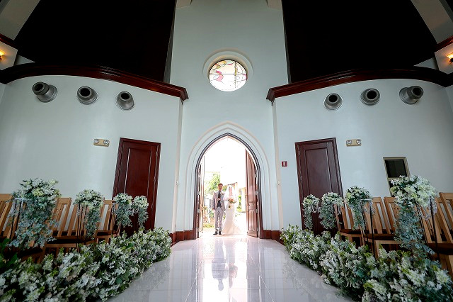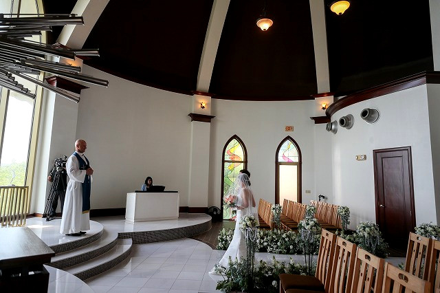 ドキドキ・ワクワクしながらチャペル内で撮影&リハーサルを行い、