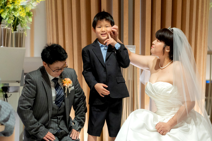 新郎様とお子様の絆が生まれてきたとは言え、まだまだ「お母さんが取られた!」とお子様が嫉妬されることもあるとの事で、その事情にも配慮しながら新郎新婦様のご希望も叶えられるよう、努めました。