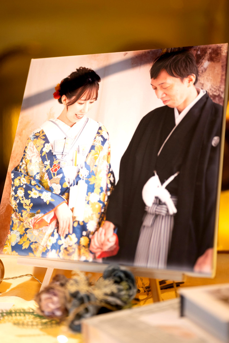 本日はそんな皆様に、和装でのお写真をお式のウェルカムグッズとして飾るイメージのご紹介です