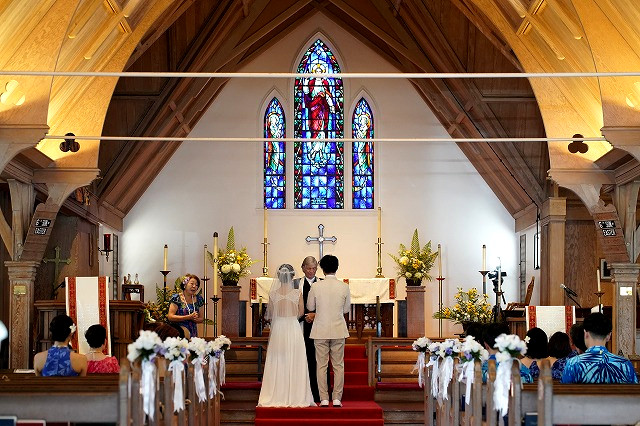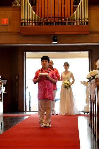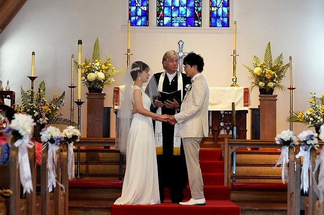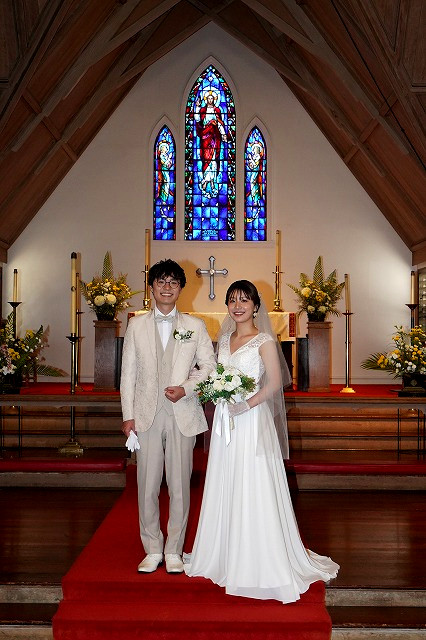 教会内でお二人の撮影を少しした後、リハーサルを行い