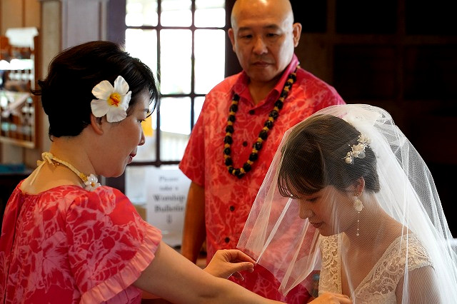 新婦お母様に花嫁の身支度の仕上げとしてベールダウンセレモニーをお手伝いいただきました。